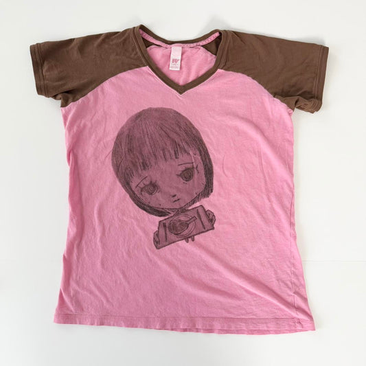 nervous girl pink cotton baseball tee (xl)