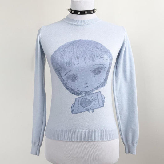 nervous girl blue soft sweater (xs)